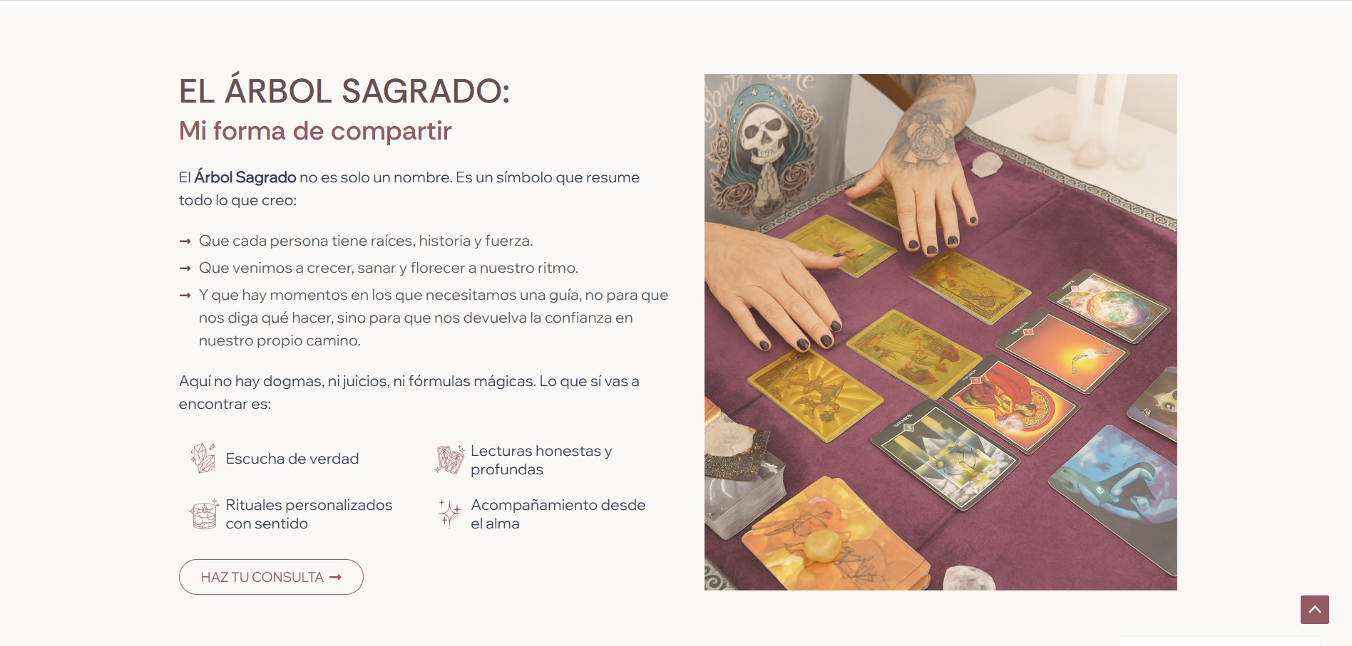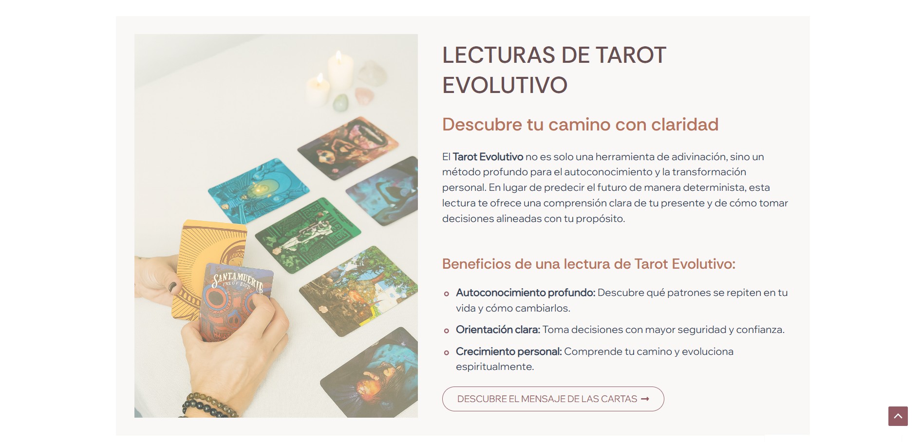 Creación de una interfaz visual armoniosa y accesible que acompaña el carácter espiritual de la marca, priorizando la claridad, la lectura cómoda y una navegación sencilla.