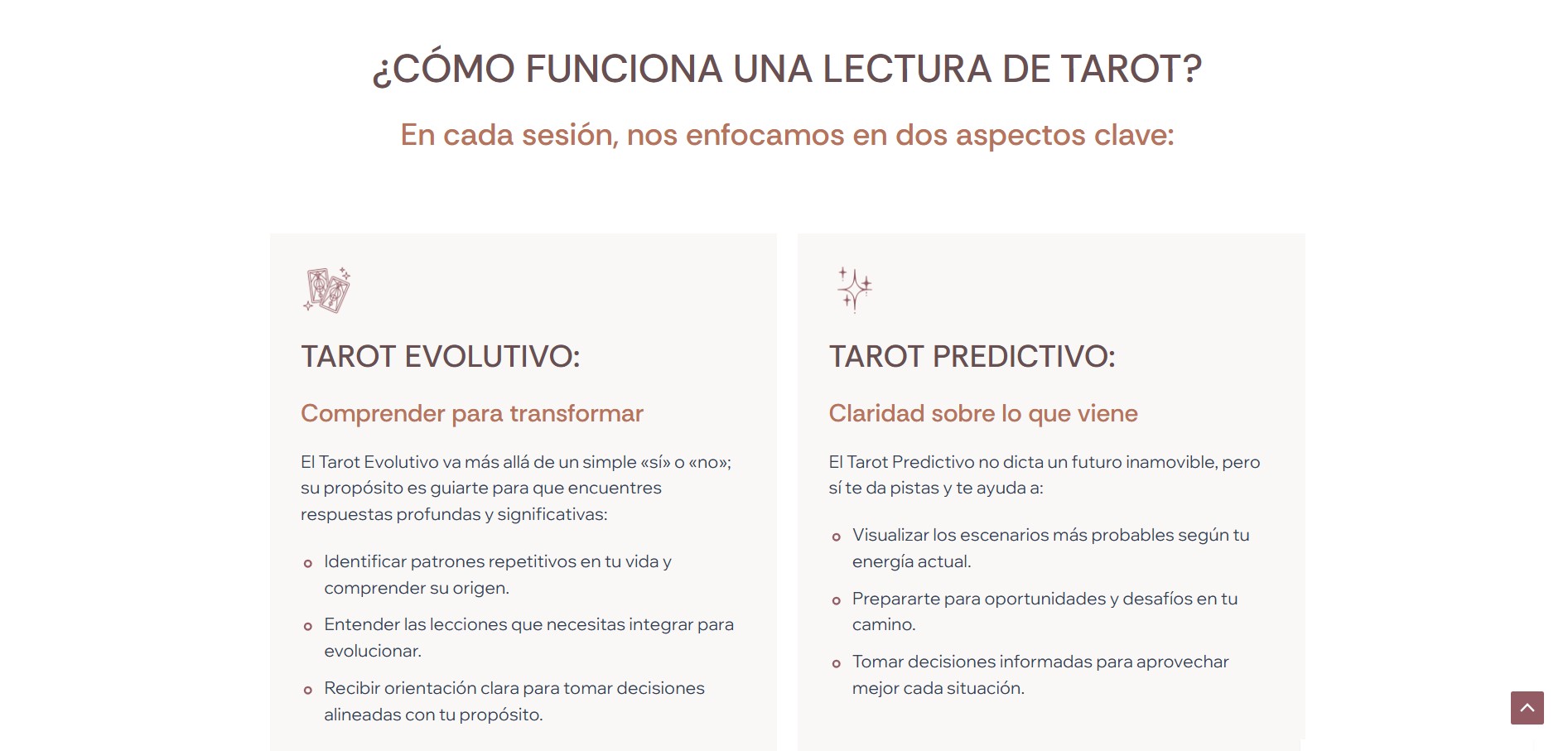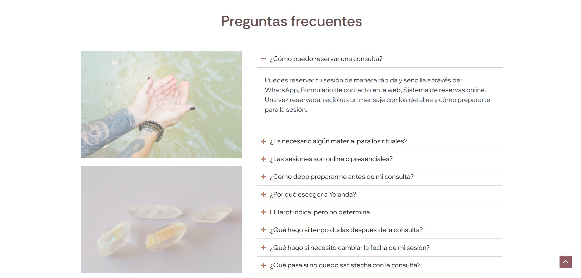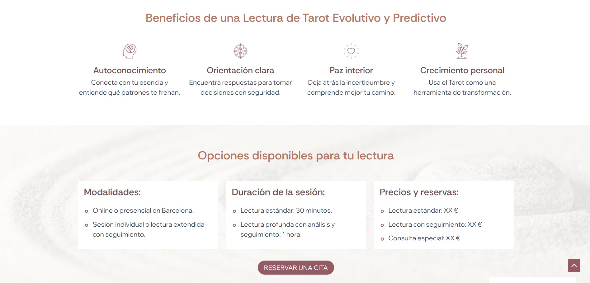 Definición de una estructura clara para presentar los distintos servicios y formaciones, facilitando que los usuarios comprendieran el enfoque del trabajo de Yolanda y pudieran identificar fácilmente las opciones disponibles.