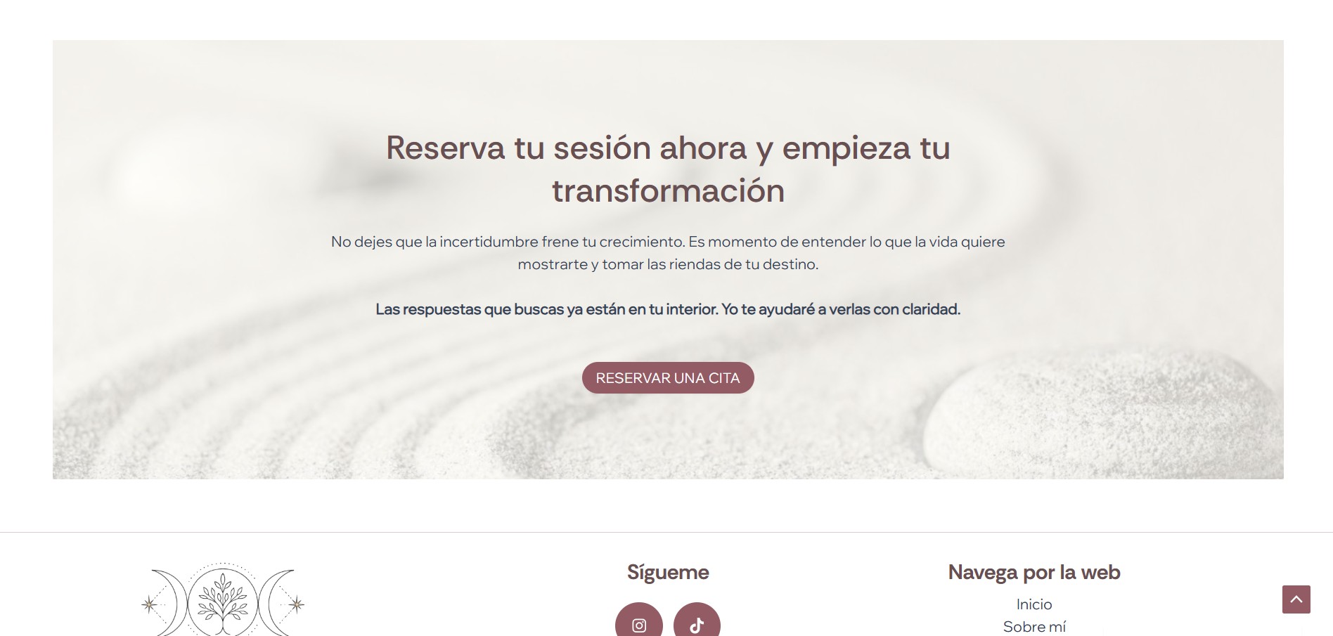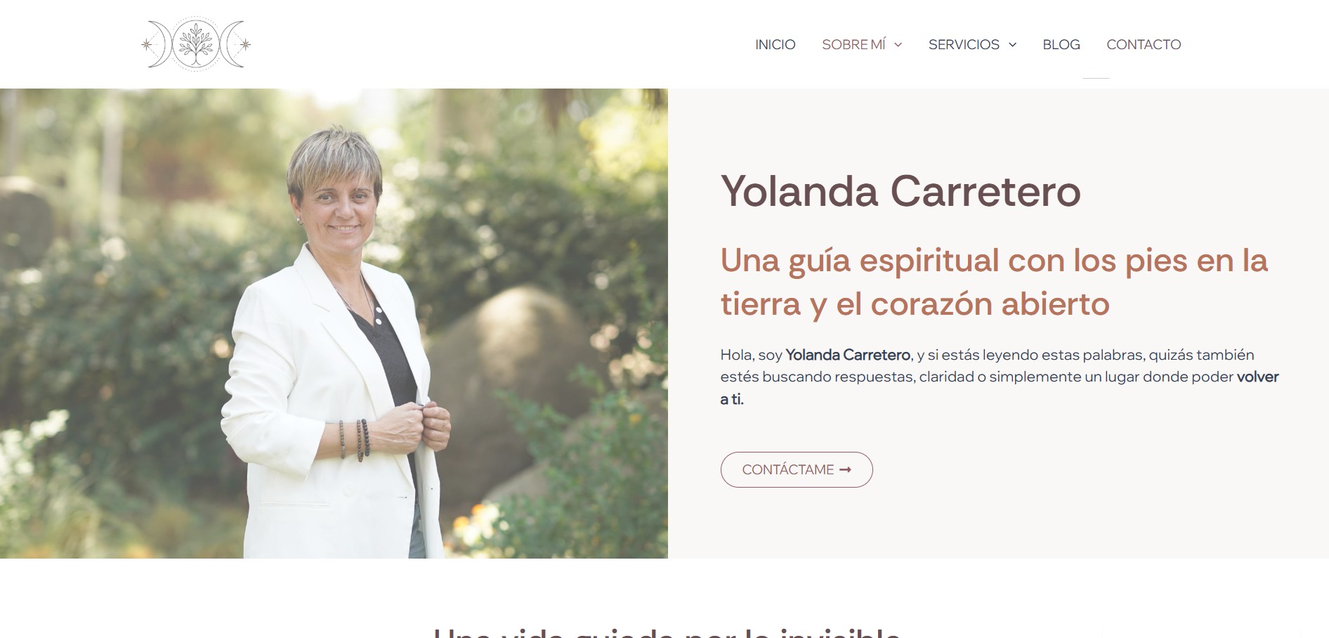 El resultado es una web clara y organizada que permite presentar de forma estructurada los distintos servicios, formaciones y propuestas de acompañamiento ofrecidas por Yolanda Carretero. El sitio facilita que los usuarios comprendan el enfoque de su trabajo y puedan explorar las distintas opciones disponibles de manera sencilla.